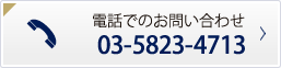 電話でのお問い合わせ TEL:03-5823-4713 メールでのお問い合わせ ※必須 お名前 ※必須 フリガナ ※必須 メールアドレス ※任意 電話番号 ※必須 内容 ※必須 お名前 ※必須 フリガナ ※必須 メールアドレス ※任意 電話番号 ※必須 内容